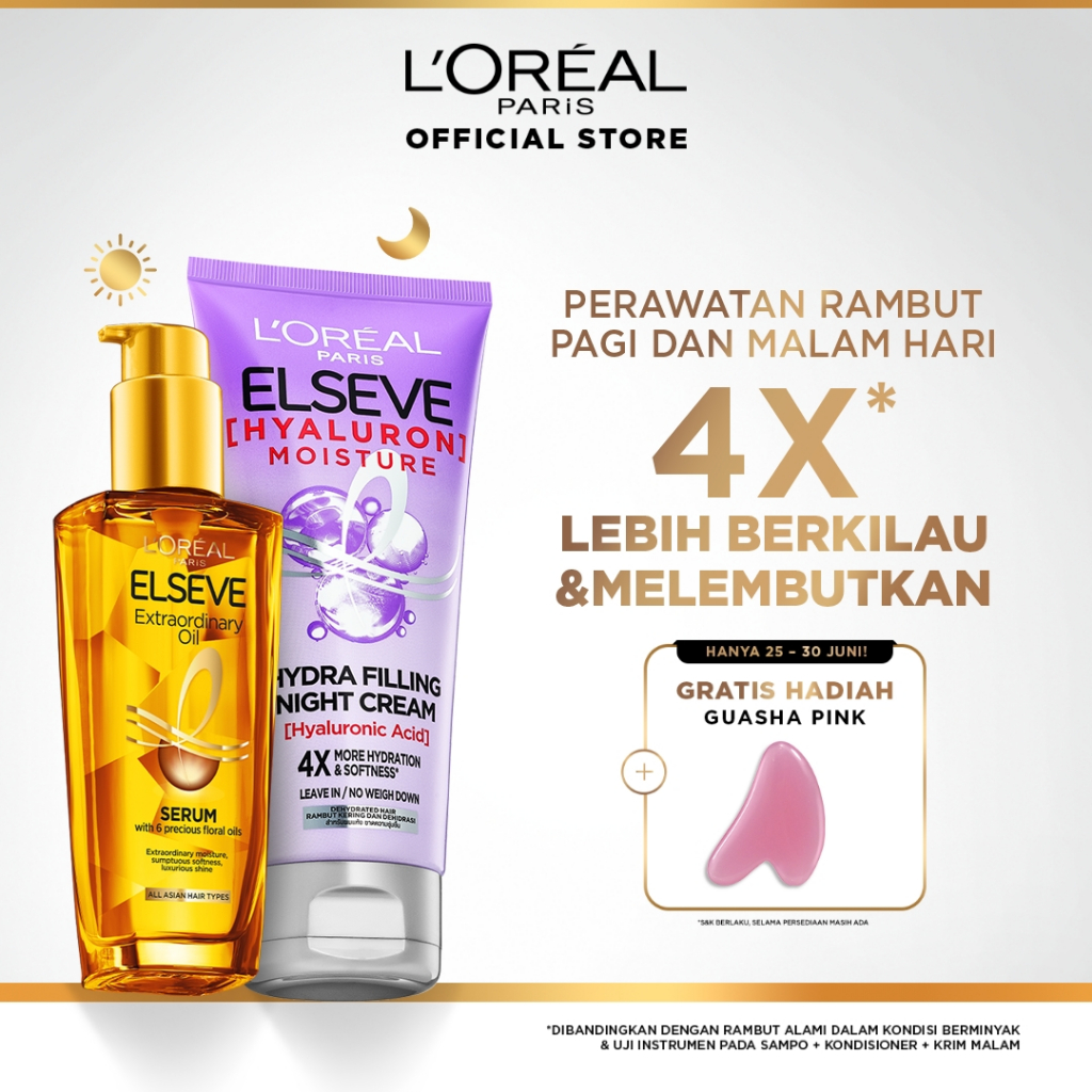 2. L'Oreal Paris Extraordinary Oil Gold 100ml + Elseve Hyaluron Moisture Hydra Filling Hair Night Cream 150ml (Perawatan Intensif Untuk Semua Jenis Rambut)