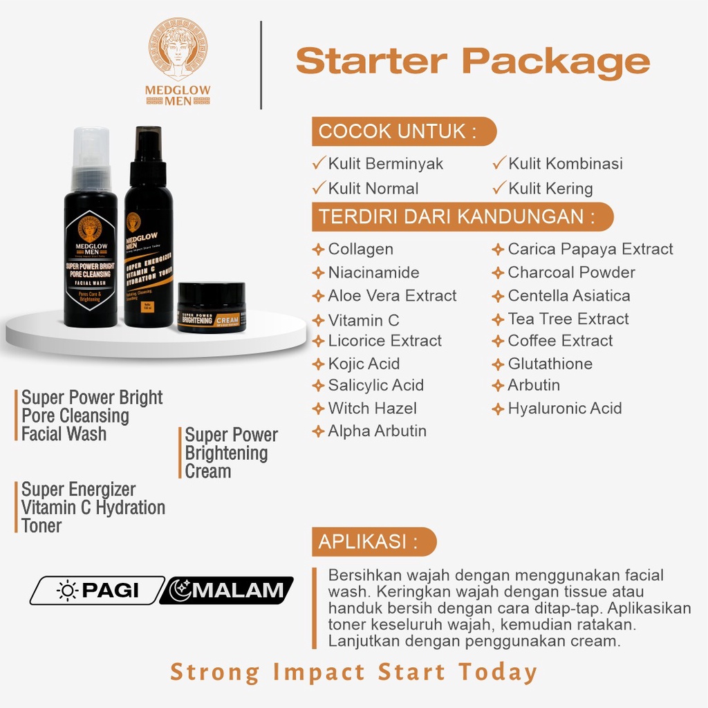 Apakah Anda sedang mencari solusi terbaik? Jangan lewatkan kesempatan untuk memiliki MEDGLOW MEN Paket STARTER Skincare Pria Whitening Anti Acne Package + Bonus Tas Kain | BPOM HALAL Perawatan Kulit Laki-Laki Krim Pagi Malam Day Night Cream Pembersih Toner Sabun Cuci Muka Wajah Serum Pemutih Pencerah Facial Wash Jerawat Farmasi Dokter—produk yang akan mengubah cara Anda [describe the benefit]. Ini adalah kesempatan langka yang sayang untuk dilewatkan!