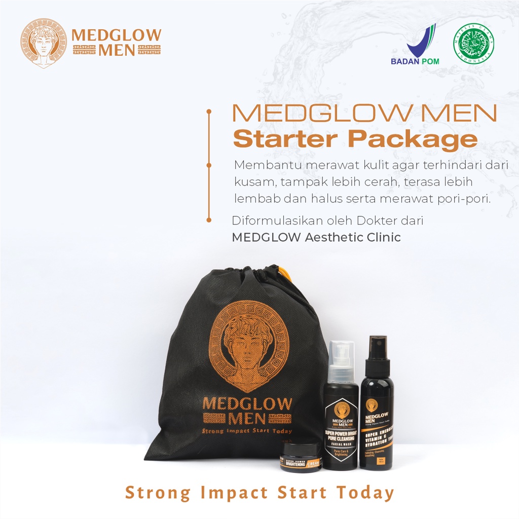 Tunggu Apa Lagi? Segera Dapatkan MEDGLOW MEN Paket STARTER Skincare Pria Whitening Anti Acne Package + Bonus Tas Kain | BPOM HALAL Perawatan Kulit Laki-Laki Krim Pagi Malam Day Night Cream Pembersih Toner Sabun Cuci Muka Wajah Serum Pemutih Pencerah Facial Wash Jerawat Farmasi Dokter dan produk lainnya di Shopee!