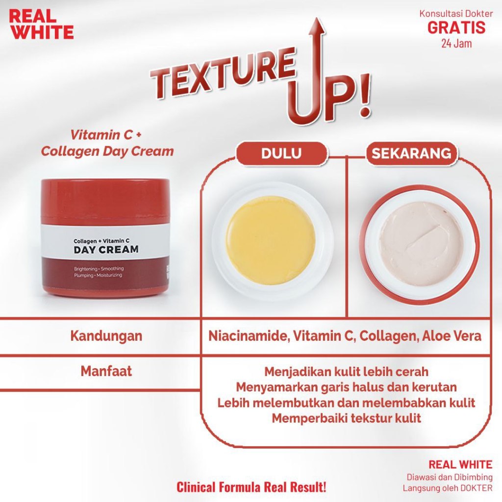 Tunggu Apa Lagi? Segera Dapatkan REAL WHITE Collagen + Vitamin C Day Cream | BPOM HALAL Krim Pagi Pemutih Wajah Skincare Whitening Pencerah Memutihkan Mencerahkan Kulit Muka PIE PIH Skin Barrier Menghilangkan Pelicin Flek Noda Bekas Jerawat Apotek Farmasi Klinik Dokter Perawatan Glowing dan produk lainnya di Shopee!